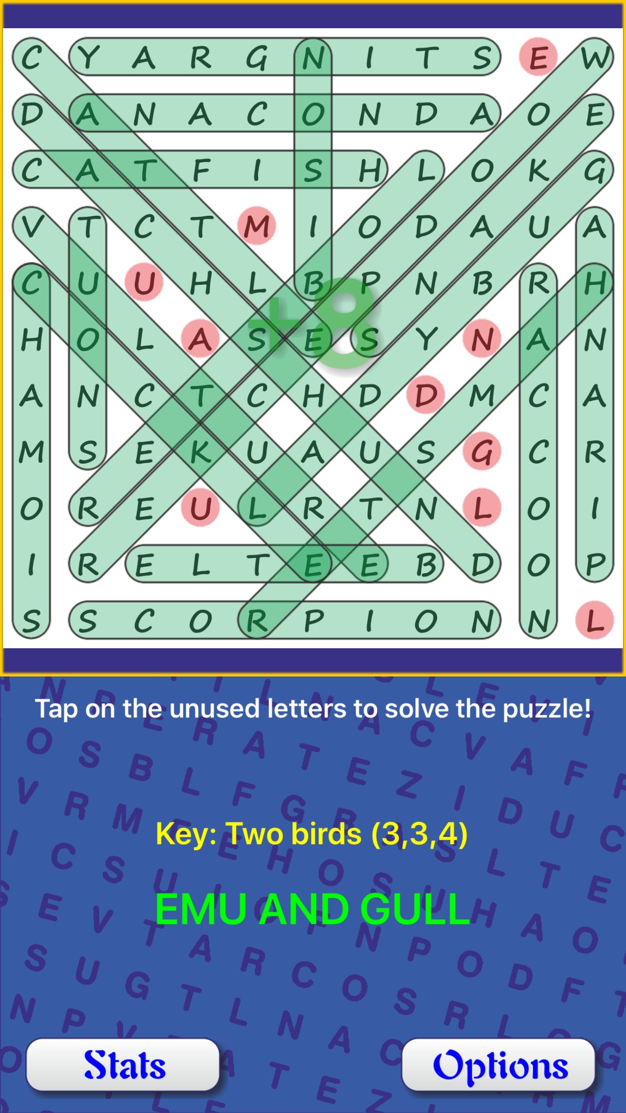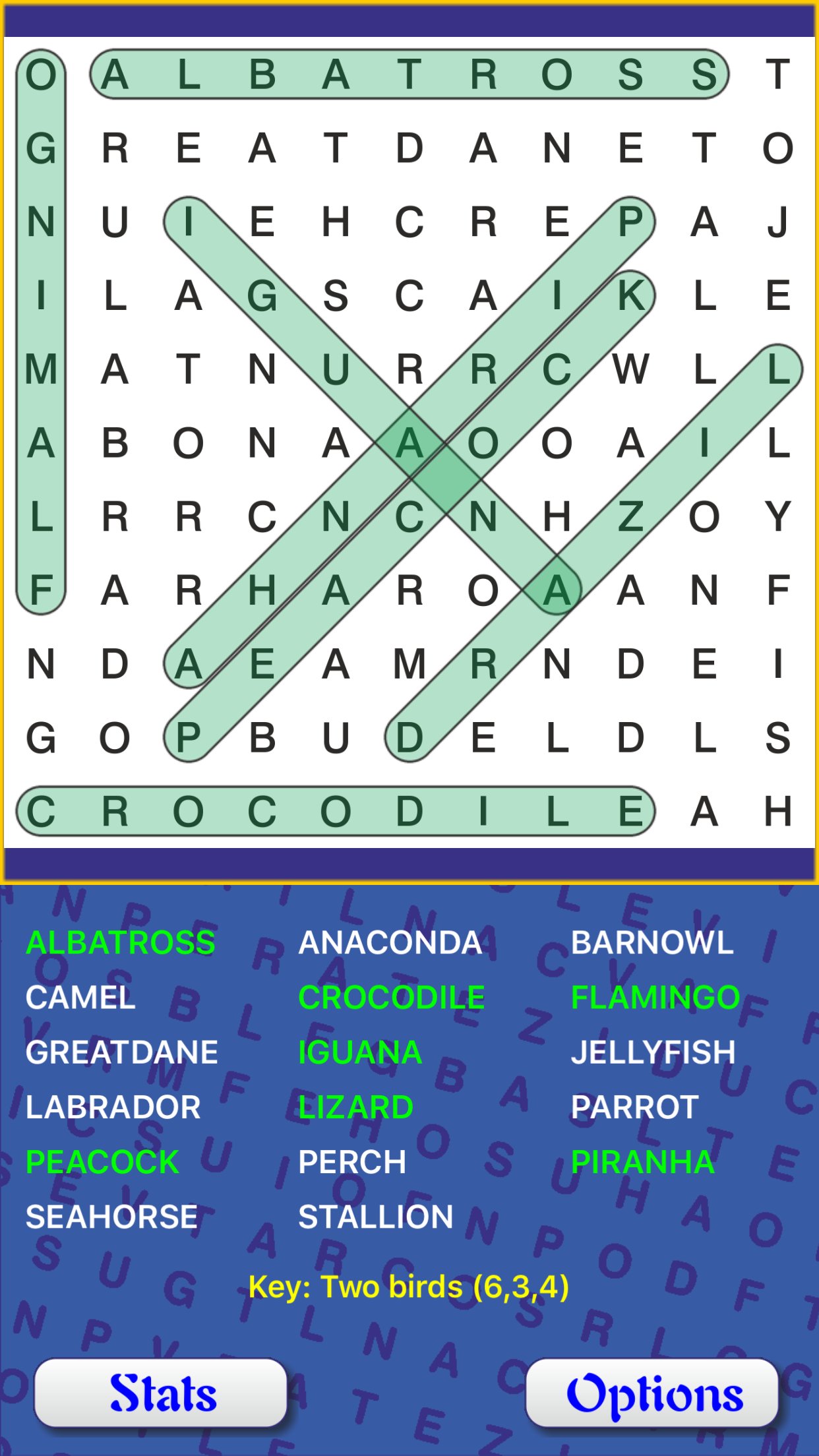 - Built-in word search generator with fun key sentence to solve upon puzzle completion.